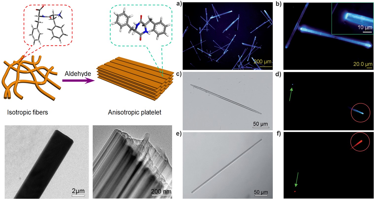 近年来,肽分子的自组装由于具有分子设计灵活、组装结构多样以及功能可调等优势而成为分子仿生体系的研究热点,并在药物输送、基因转染、组织工程以及生物传感等诸多领域得到广泛应用。我们课题组以芳香类线性二肽-二苯丙氨酸及其衍生物作为构筑基元,在不同的实验条件下动态调控肽分子的自组装过程,获得了一系列具有一维、二维以及三维形貌的纳米组装结构。通过改变组装体系的浓度、变换溶剂以及引入外源小分子诱导等方式成功实现了二苯丙氨酸基肽分子多功能,多级结构的可控自组装。Adv. Funct. Mater. 2015, 25, 1193; Small 2015, 11, 1787; Chem. Eur. J. 2015, 21, 9461; Adv. Opt. Mater. 2015, 3, 194; Chem. Commun. 2015, 51, 7219; ACS Nano 2015, 9, 2689; Angew. Chem. Int. Ed. 2014, 53, 2366; Chem. Commun. 2013, 49, 9956; ACS Nano 2012, 6, 111; Angew. Chem. Int. Ed. 2011, 50, 11186; Adv. Mater. 2011, 23, 2796; Chem. Soc. Rev. 2010, 39, 1877; Adv. Mater. 2010, 22, 1283.